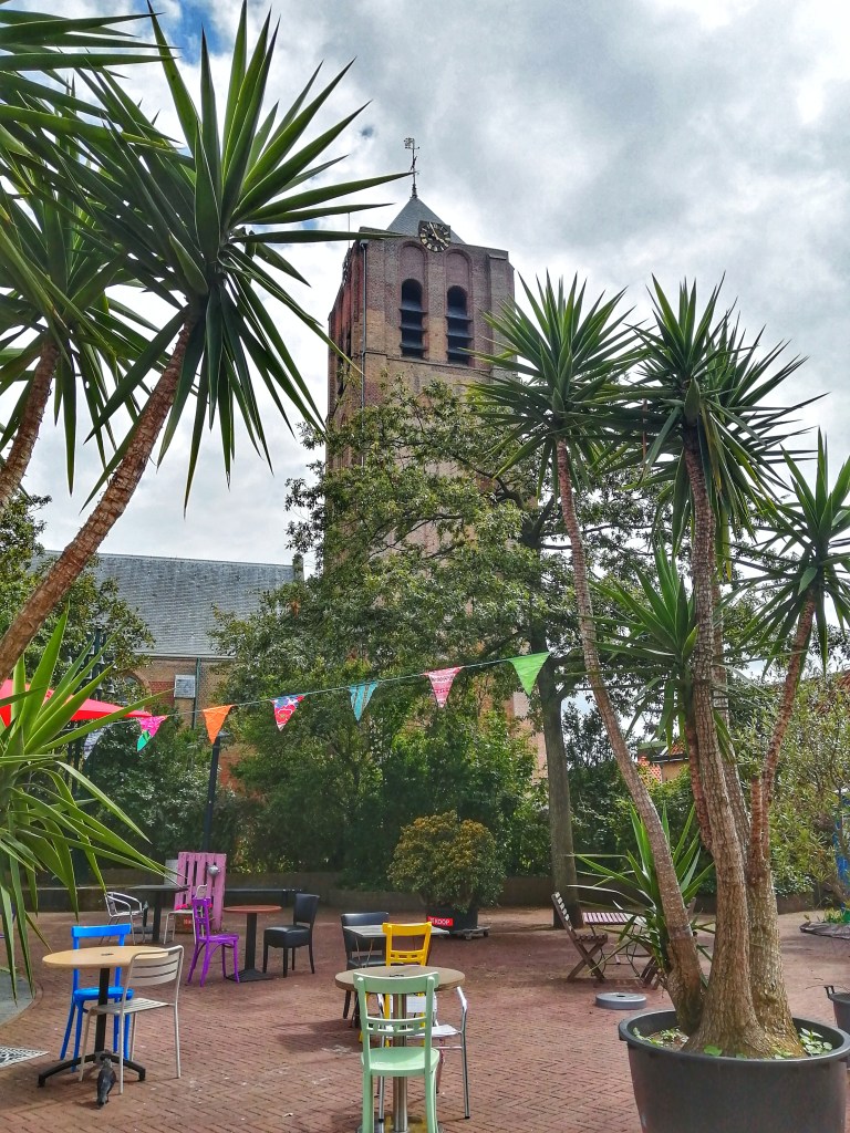 Sie lies mich am Albert Heijn/ Busbahnhof raus, von wo aus man auf den Kirchhof mit der „Oude Kerk“ – alten Kirche kommt. Kirche nicht offen und der eigentlich sehr hübsche Kirchhof gerade so im Schatten, das kein so richtiger Aha Effekt bei mir aufkam. Ich lief noch ein wenig durch die recht ausdruckslosen Gassen bevor es mir bei praller Sonne zu warm wurde und ich entschied die 2,2 km anzutreten zum