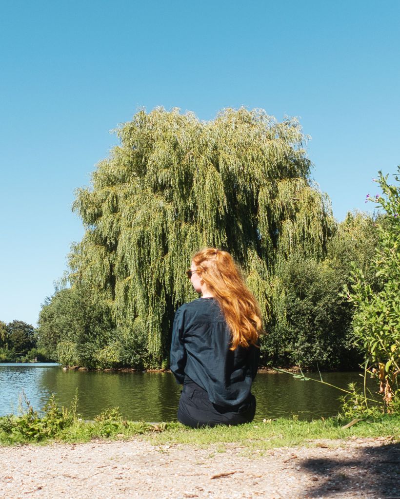 Am See angekommen, hatte ich wegen des Freitag Nachmittags und der Wärme unzählige Menschen erwartet aber außer ein paar badenden Kindern und Menschen mit Hunden ist niemand hier. Herrliche Ruhe, blauer Himmel, ein sich spiegelnder See, Enten und Gänse auf diesem. Wunderschön. Ich lasse meine Beine und Seele baumeln. Der See ist herrlich kühl. Ich genieße die Sonne und mein Leben. Lasset euch gesagt sein, auch mit wenig Geld kann man mit ein bisschen mehr Aufwand einen tollen Sommerurlaub haben!
