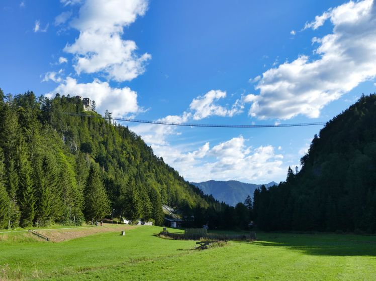 Gegen 9 geht es erst zur nur wenige Kilometer entfernten Highline 179 Hängebrücke von der man eine schöne Sicht auf Burg Ehrenberg hat. Da der Parkplatz schon 4€ kostet und man erst nach oben wandern oder fahren muss und dort auch Eintritt zahlen muss, entscheiden wir uns nach ein paar Fotos von unten, weiter zu fahren. Eine weise Entscheidung wie sich später herausstellen soll.