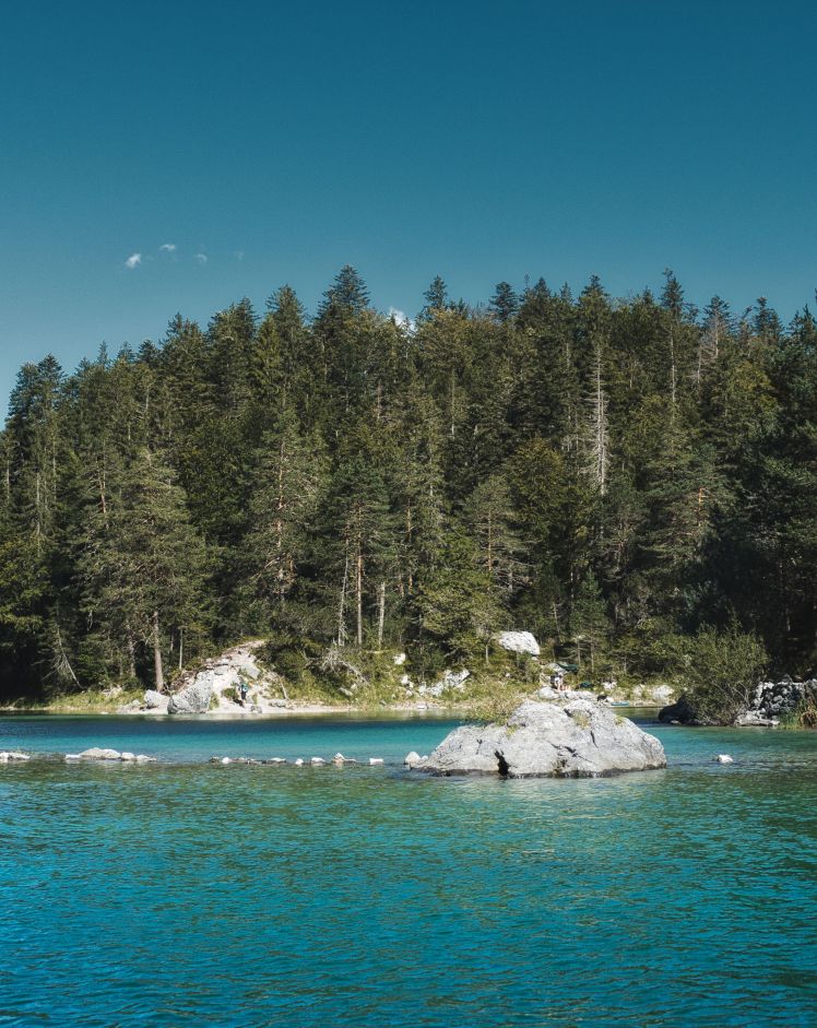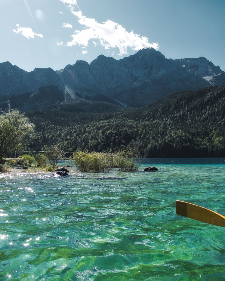 Ich habe jedenfalls Spaß und spare nicht mit Ahhs und Ohhs. Der ultratürkise See könnte genauso auch irgendwo in den kanadischen Rockies liegen und ist deshalb wohl auch momentan so gehyped. Und auch hier mal wieder – völlig zurecht. Es ist einfach nur wunderschön. Der Blick auf die Zugspitze. Die Farbe des Wassers. Der düster wirkende magische Wald. Die 8 süßen kleinen Inseln auf dem See. Oh Leben, wie kannst du schön sein!