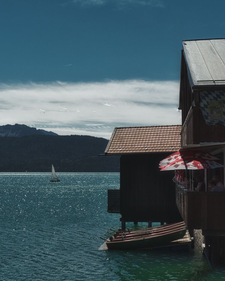 Wir fahren weiter und kommen an den Walchensee. Ich war als Kind schon mal hier und weiß das es schön ist aber wie schön hatte ich vergessen. Ein herrlich großer See mit einer dunkleren türkisen Wasserfarbe. Windsurfer, Segelboote, rote Tretboote. Das volle Programm an Sommergefühl wartet hier auf uns.