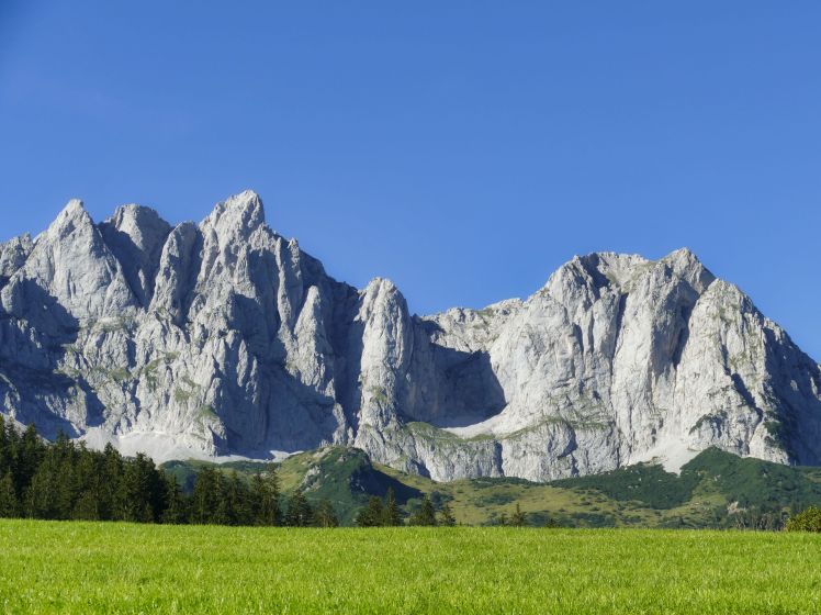 Wir können einfach nicht aufhören begeistert vom Bergpanorama zu sein. So begeistert, dass wir in Going (was für ein Name) einfach von der Hauptstraße abbiegen und ein Stück den Berg lang hoch fahren um eine noch bessere Sicht auf den wilden Kaiser (2300 m) zu haben. Und wieder kommt mir der Heidi Song in den Sinn „grüne Wiesen im Sonnenschein, brauchst du zum glücklich sein“ (na, habt ihr schon nen Ohrwurm?!) Dieser Anblick kann einfach nur glücklich machen.