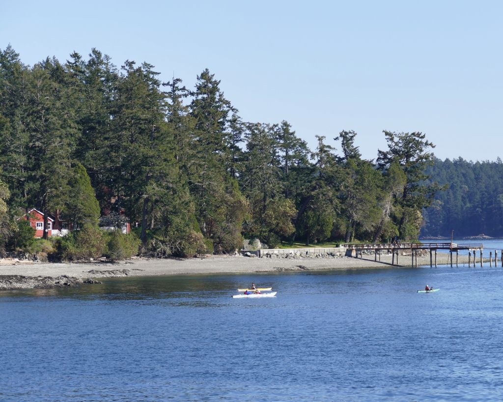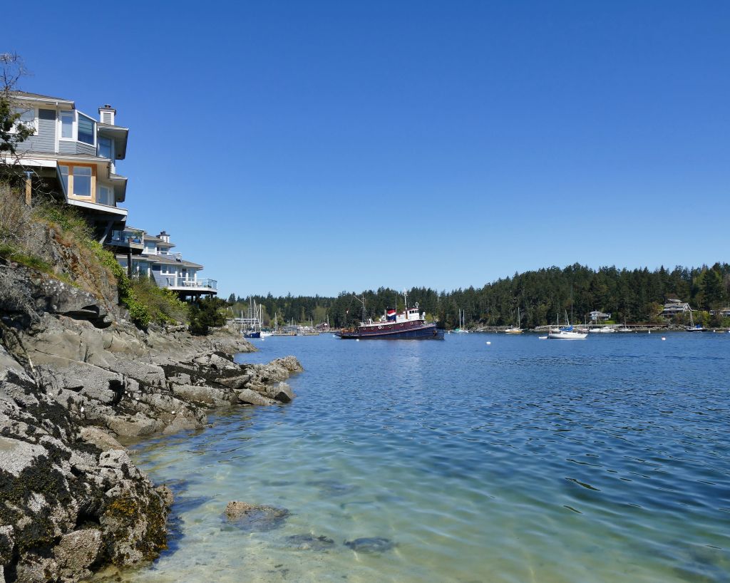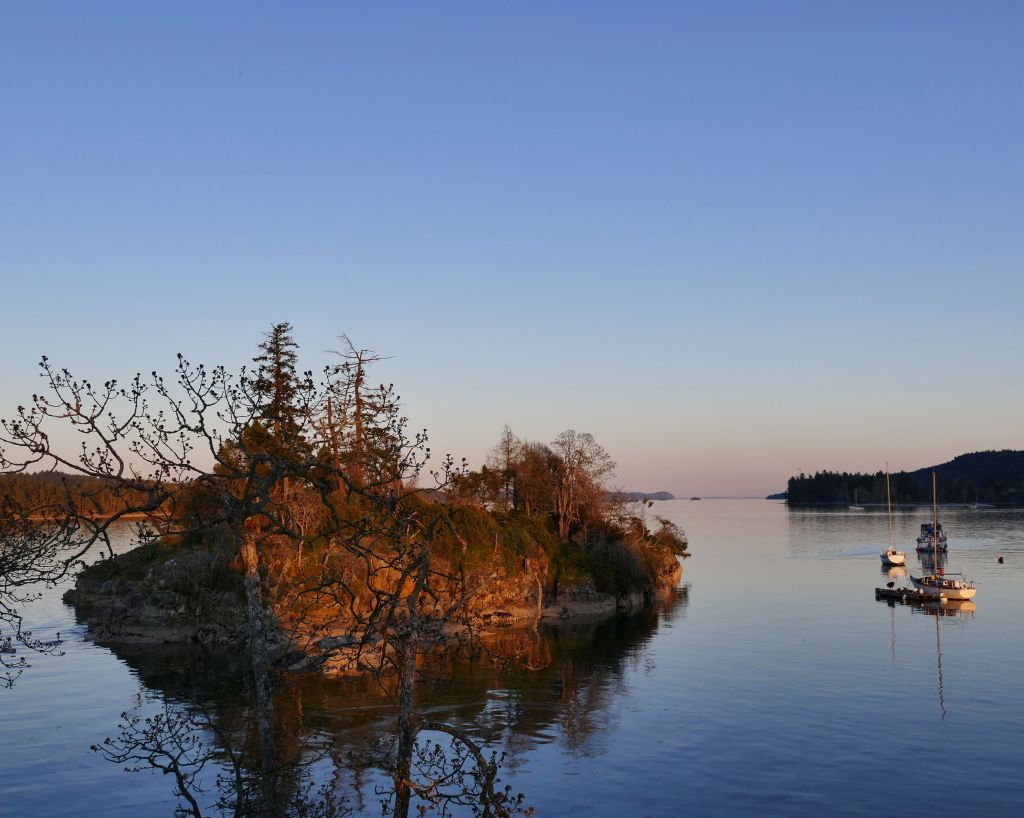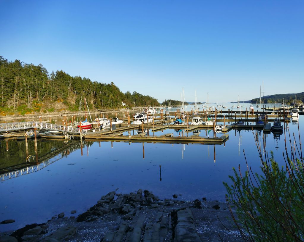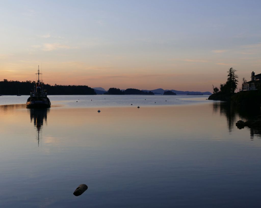 Samstag gegen 7:30 Uhr (es sind jetzt bereits 15°C) geht es mit zwei Bussen in ca. einer Stunde Fahrt bis zum Swartz Bay Ferry Terminal und von dort für 10,75$ in 30 Minuten auf die gegenüberliegende Insel, also eine von den 1000 Inseln rings um Vancouver Island.