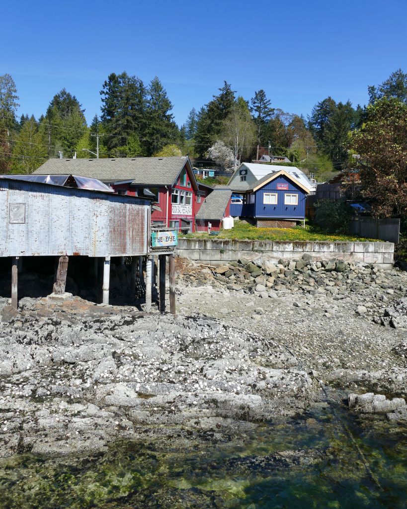 Folge ich den 2 Km halt auch noch. Ich erwarte nicht viel, denn ein Strandzeichen auf einer Karte bedeutet meist nur eine kleine öffentliche Fläche am Meer wo keiner ein Haus hinbauen durfte. Zu meiner Überraschung gibt es hier aber wirklich einen recht großen Strand. Sandstrände gibt’s hier in Kanada eigentlich fast keine. Meist sind es Muscheln oder Steine. Mal groß, mal klein. Hier habe ich Glück und erwische kleine Muscheln. Zum rumlungern das Beste. Ich laufe Abseits der anderen Menschen über ein paar Felsen zu einer Bucht von der aus man auch einen Blick zum Ort hat und breite dort mein kleines Reisehandtuch aus (ich bin immer auf (fast) alles vorbereitet) und schlafe in der Sonne ein. Ich werde wach und panisch. Über mir steht etwas und leckt mich an. Ich bin so schlaftrunken dass es ein bisschen länger dauert, bis ich merke, dass ein Dobermann mich hier entdeckt hat und mit der Leckprobe sicher mal testen wollte ob ich noch lebe. Dennoch bin ich etwas ängstlich, denn normalerweise stehe ich über oder zumindest neben dem Hund und nicht so ein Hund über mir. Aber am Ende gut, dass der Stromer mich wach gemacht hat, denn die Sonne ist erbarmungslos (ich kanns immernoch nicht fassen, dass die Sonne in Kanada im April scheinbar genauso stark ist wie in Australien im Sommer). Ich merke bereits jetzt dass ich mir meine Achsel verbrannt habe. Die erste Sonne des Jahres und ich breite vor ihr eine Köperstelle aus, die eher weniger häufig die Sonne sieht. Wie gesagt ich bin auf fast alles vorbereitet. Sonnencreme ist auf den Schultern und im Gesicht aber weiter hab ich nicht vorausgeplant. Das werde ich in den nächsten Tagen noch bei jeder Bewegung bereuen.
