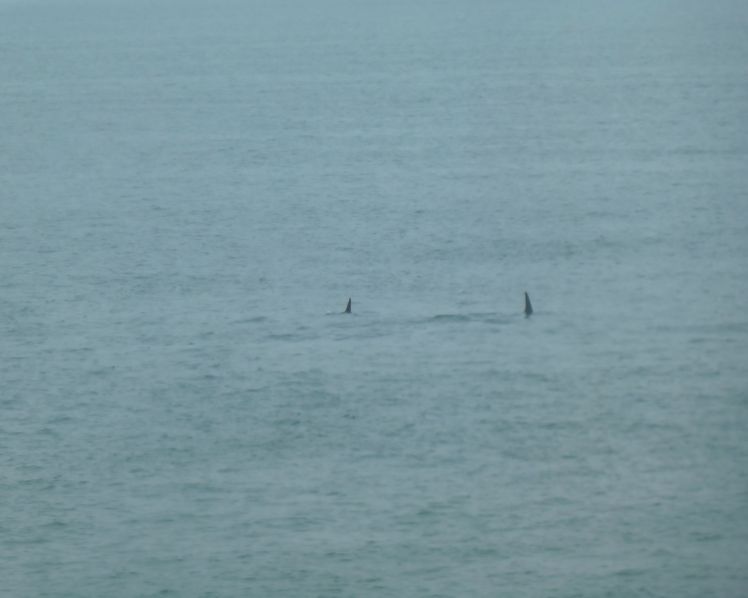 Im Besucherraum suche ich nach einem einsamen Platz für meinen Rucksack und gucke dabei aus dem Fenster und traue meinen Augen kaum, ist das da eine Fontäne? Und das ist doch eine Rückenflosse. Ich kann mein Glück kaum fassen. 2 Orcas. Ich könnte schon wieder weinen vor Glück. Ich meine wie groß sind die Chancen, das ich genau in der Minute wo wir an denen vorbei fahren aus dem Fenster gucke. Für mich mal wieder eine Bestätigung, dass (realistische) Wunder wahr werden können wenn man nur ganz fest daran glaub und sie visualisiert.