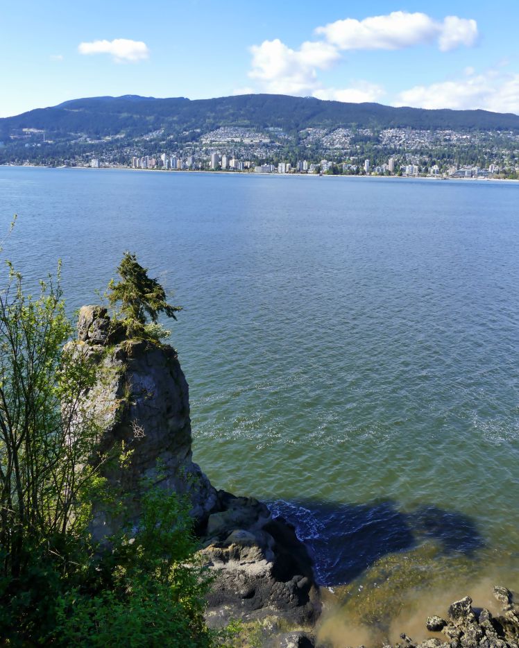 Der Siwash Rock ist bekannt und wird von den Meisten nur von der Seawall aus begutachtet. Es gibt aber noch einen oberhalb gelegenen Aussichtspunkt, der von der Seawall aus nur schwer und über Umwege zu erreichen ist, deshalb bin ich gleich von oberhalb hier her gelaufen. Gar nicht so leicht zu finden, weil nicht ausgeschildert. Da ist Maps.me natürlich auch wieder eine gute Hilfe.