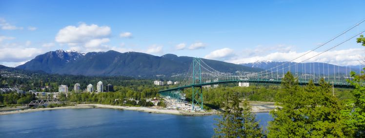 Nichtsdestotrotz ist der Ausblick immer noch da und der hat es in sich. Lions Gate Bridge, North Vancouver, leicht schneebedeckte Berge im Hintergrund, Diese Ansicht wird einfach nie alt und sorgt immer für ein Wow.