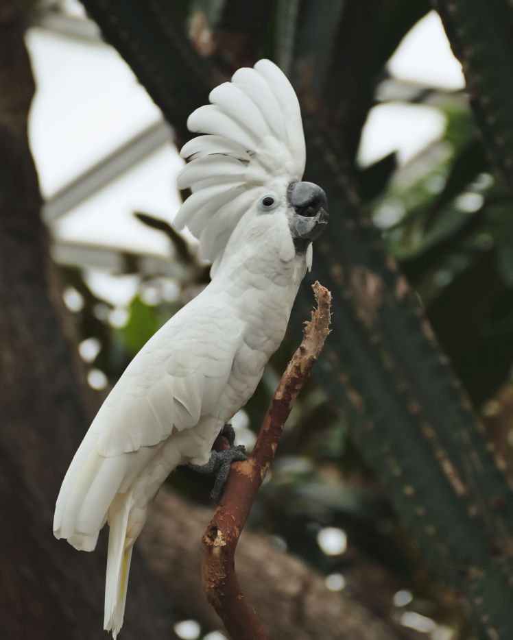 So ein bisschen wie das Leipziger Gondwanaland nur in Miniatur. Hohe Luftfeuchtigkeit, tropische Pflanzen und jede Menge Vögel. Fasane, alle möglichen Finken, besondere Tauben und unzählige Papageien. Die kleineren Vögel flattern einem auch schön über den Kopf oder rennen über den Weg. Man muss da ganz schön aufpassen, das man nicht beim erstaunten nach oben gucken, einen kleinen Gesellen am Boden übersieht, der gerade Nistmaterial klar machen will.