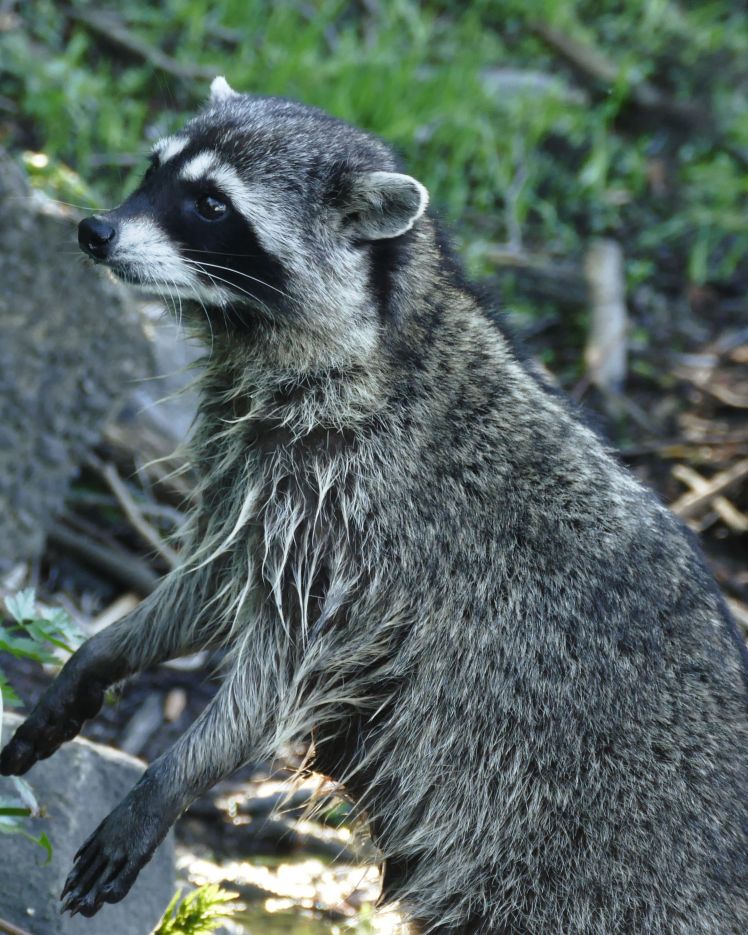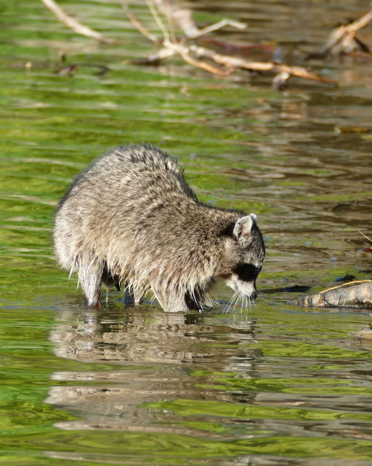 Ich war eigentlich bereits auf dem Weg zum Bus und bin nur an der Lagune entlang gelaufen in einem Abschnitt wo sich eher wenige Menschen hin verirren. Als erstes stand ein kleines schwarzes Eichhörnchen neben mir und bettelte mich an. Ein paar Minuten später war ich gerade damit beschäftigt aufs Wasser zu gucken, als ich neben mir ein Geräusch hörte (es gibt im Park auch Kojoten, da wird man leicht nervös bei undefinierbaren Geräuschen) und neben meinem Fuß auf einmal ein Waschbär saß. Ich hab noch nie einen wilden Waschbär gesehen (in real life) und erst recht nicht bettelnd neben mir. Ich war erst mal ein wenig überfordert. Zum Glück merkte der Kleine das auch und lief weiter ins Wasser um dort nach etwas Essbarem zu suchen.