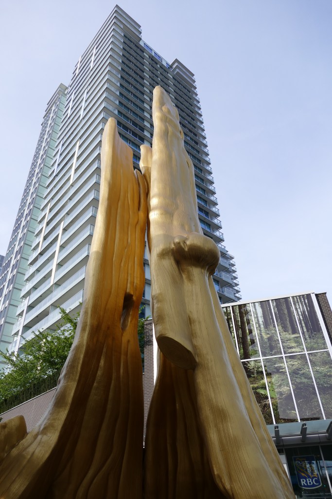 Ich wusste, das es diesen Baum gibt, habe ihn dann aber nur durch Zufall entdeckt. Zu finden ist der 13 m hohe vergoldete Baum gegenüber der Canada Line Station Marine/Cambie. Das Kunstwerk wurde 2016 enthüllt und stellt ein exaktes Replikat vom 800 Jahre alten ausgebrannten Baum im Stanley Park dar.