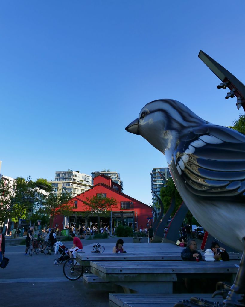 Die beiden übergroßen Spatzen sind am Eingang des ehemaligen Olympic Village (Winterspiele 2010) an der False Creek zu finden. Da fragt man sich wie jemand auf die Idee kommt ein paar Gigantenspatzen als Kunst zu verkaufen aber hey, sowas ist mir tausend mal lieber als irgendwas super abstraktes.
