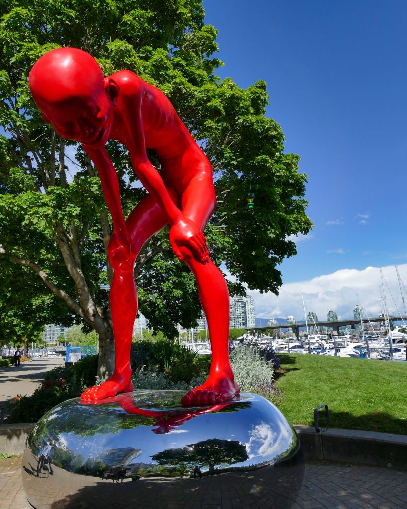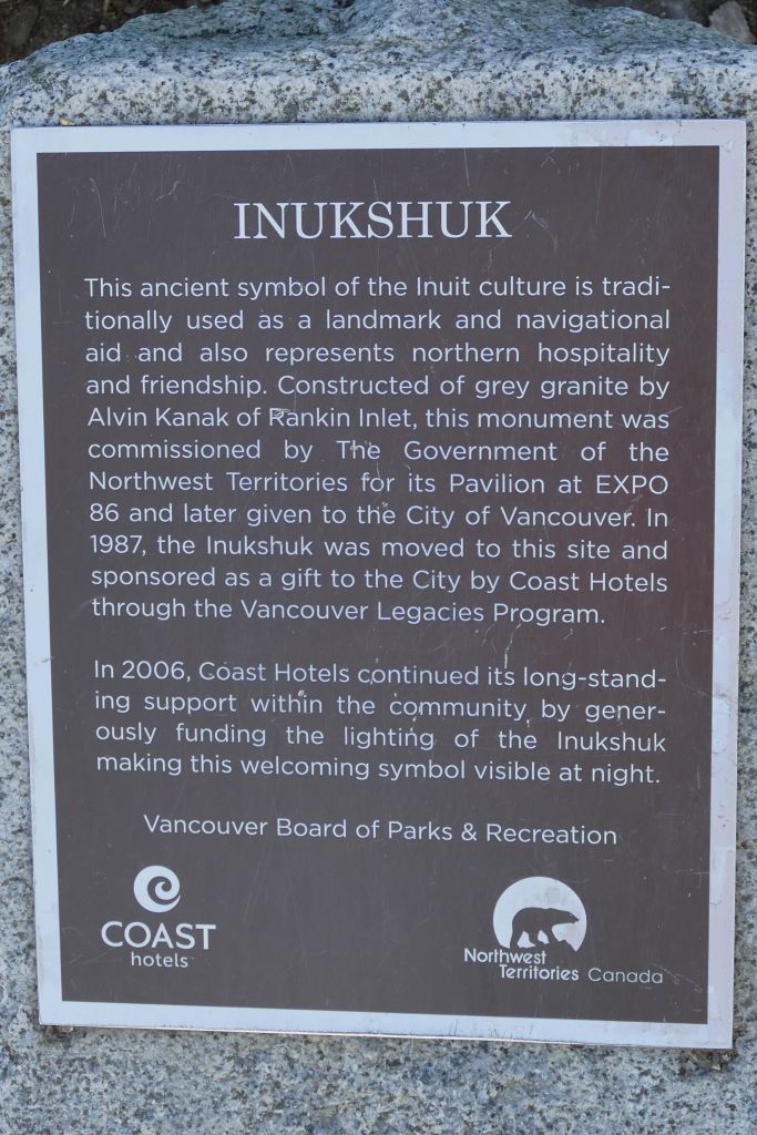 Es wird auch als „Greeter“ bezeichnet, da es meist an Orten steht die man als erstes sieht wenn man wo ankommt, wie hier in der English Bay, wenn man beispielsweise mit dem Boot vom Wasser aus hier ankommen würde. So „Kanada grüßt seine Gäste“ mäßig.