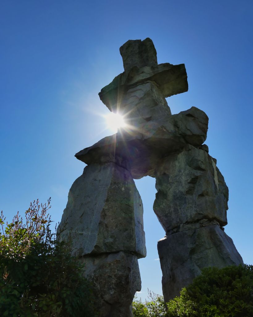 Das traditionelle Inuit Kunstwerk ist an einigen Stellen in Kanada zu finden, unter anderem auf einem der Berge in Whistler oder vor Hotels, habe ich es auch schon gesehen.