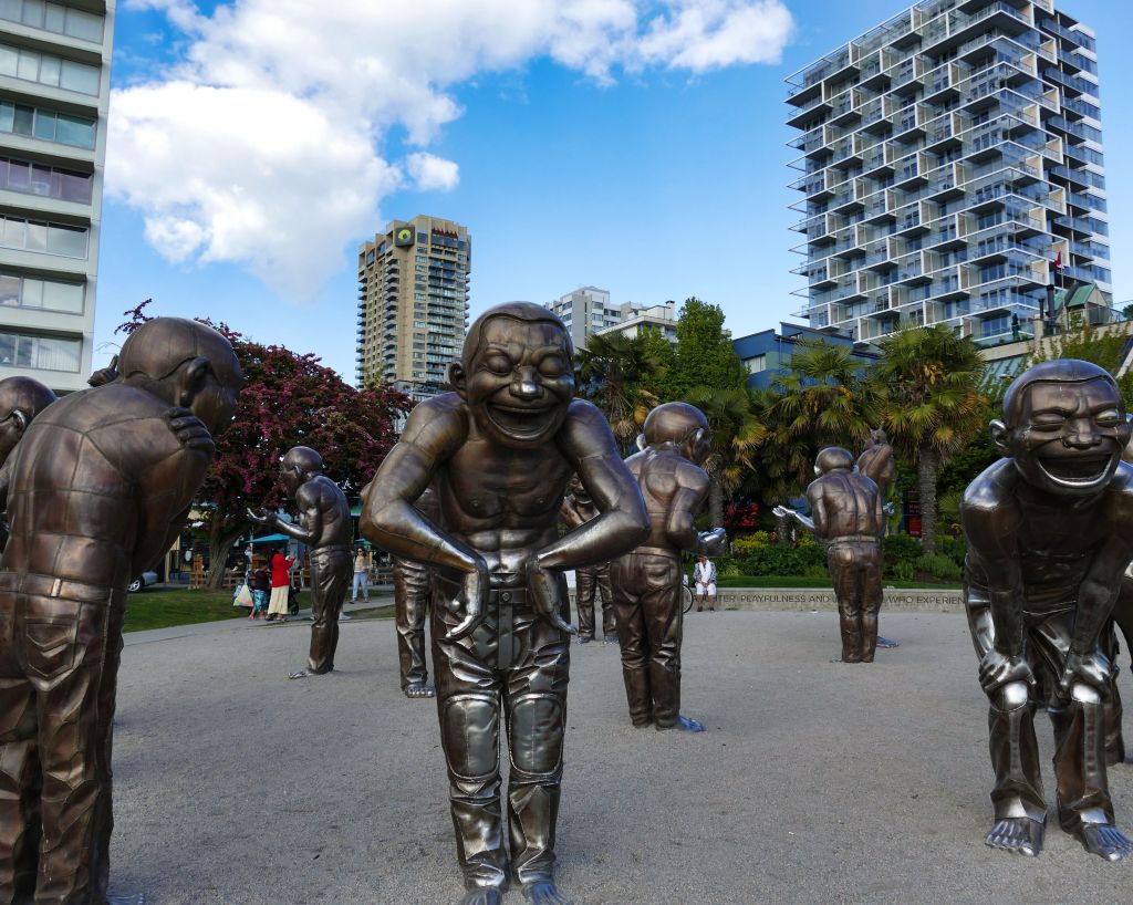 Die 2009 installierten 14 Bronzefiguren stellen den Künstler selbst dar und wurden von einer Kunststiftung an die Stadt Vancouver gespendet.